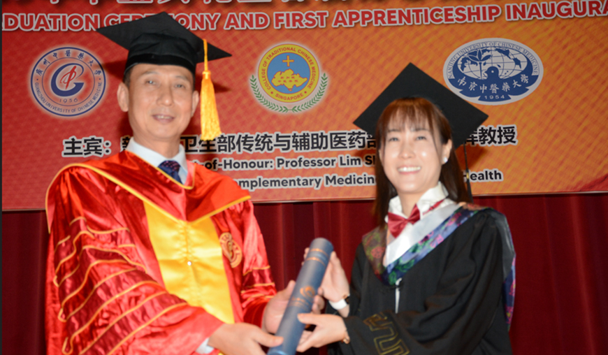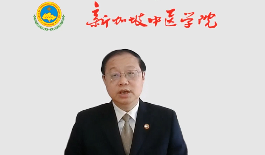 中国驻新加坡大使馆韩骏公参致辞对毕业生表达了祝贺与期望,同时也对我院的首届师带徒项目表示肯定。他指出,今年新加坡中医学院又敢为人先,实施中医课程师带徒培养机制,在新加坡中医人才培养中是新生事物,他相信这样的模式能激发学生更高的学习热忱。有望成为新加坡中医事业传承的重要力量。
